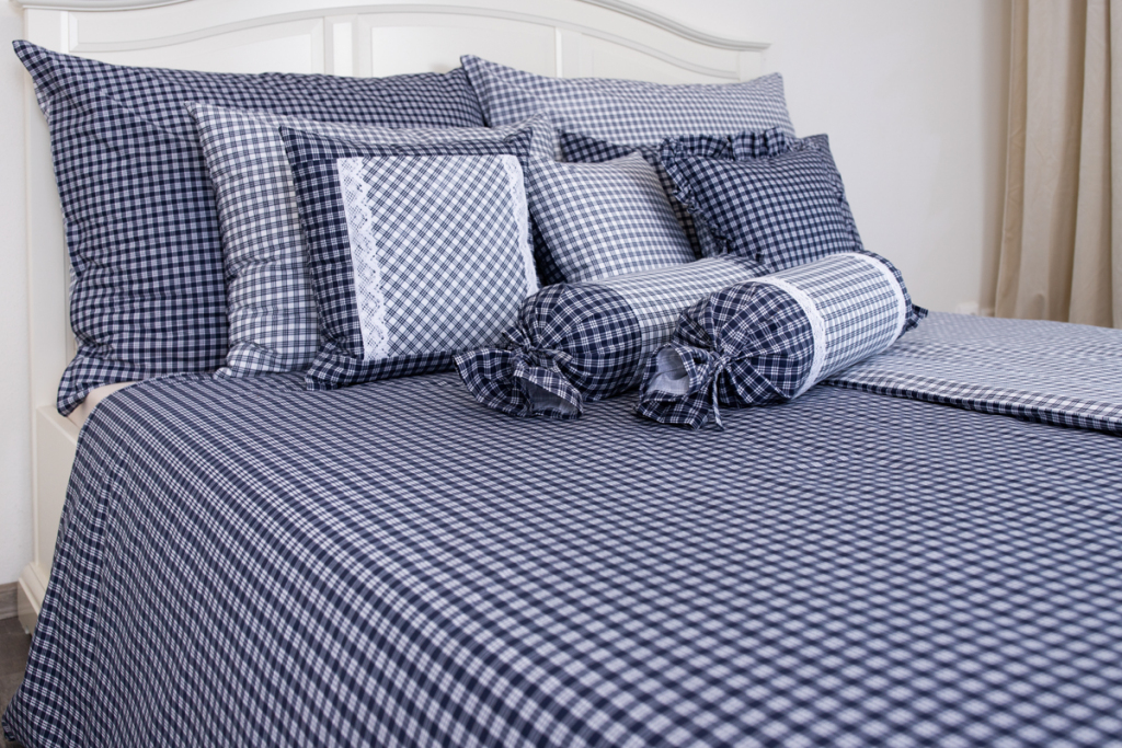 - Bavlněný přehoz - Kostička modrá NEGATIV/POZITIV - 1x 240/200