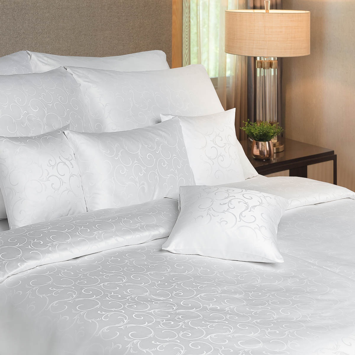 Luxusní damaškové povlečení ORNELLA s jemným vytkaným vzorem v bílé barvě. Damaškové ložní povlečení z nejjemnějších česaných přízí nabízí příjemný omak a elegantní vzhled.