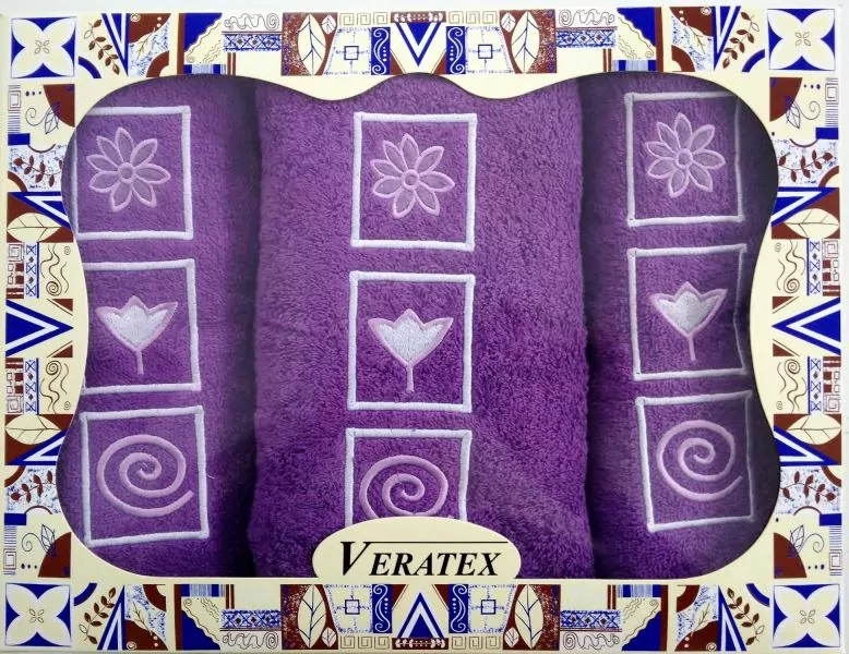 - Dárkově balené vyšívané ručníky s osuškou - fialová