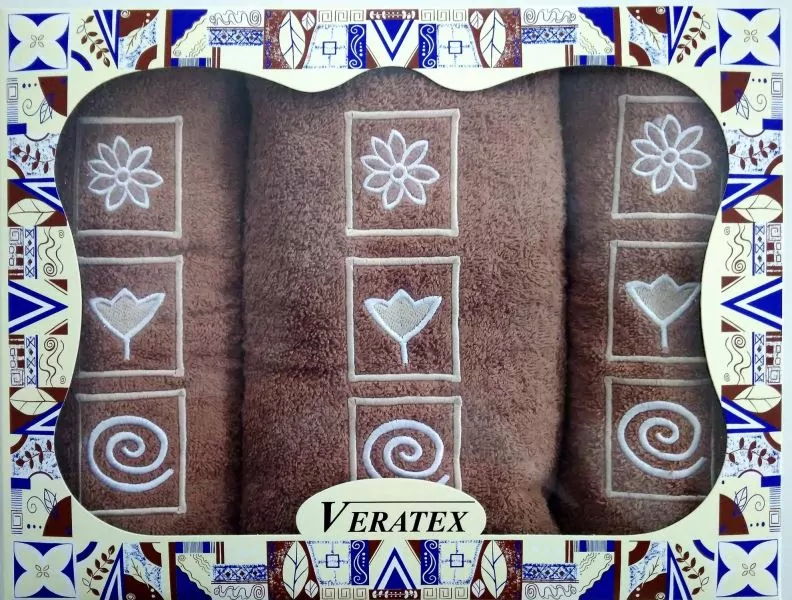 - Dárkově balené vyšívané ručníky s osuškou - hnědá