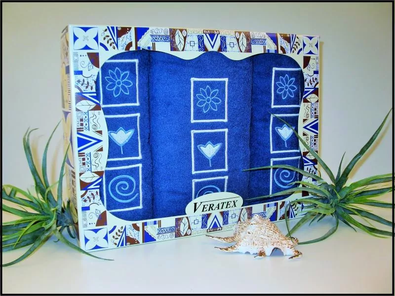 - Dárkově balené vyšívané ručníky s osuškou - tm. modrá