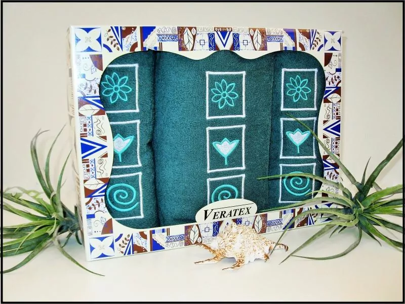 - Dárkově balené vyšívané ručníky s osuškou - tm. zelená