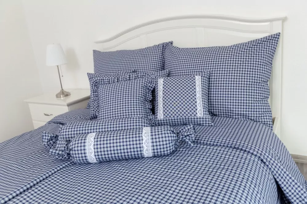 Chcete-li dodat vaší ložnici pravý venkovský vzhled, kostkované povlečení k tomuto stylu neodmyslitelně patří a právem se stále těší velké oblibě. V této variantě je oboustranně použita látka s tmavě modrým podkladem a bílými linkami tvořící drobné kostičky. Povlečení můžete doplnit polštářky a válečky. Povlečení nežehlivé, velmi snadná údržba.