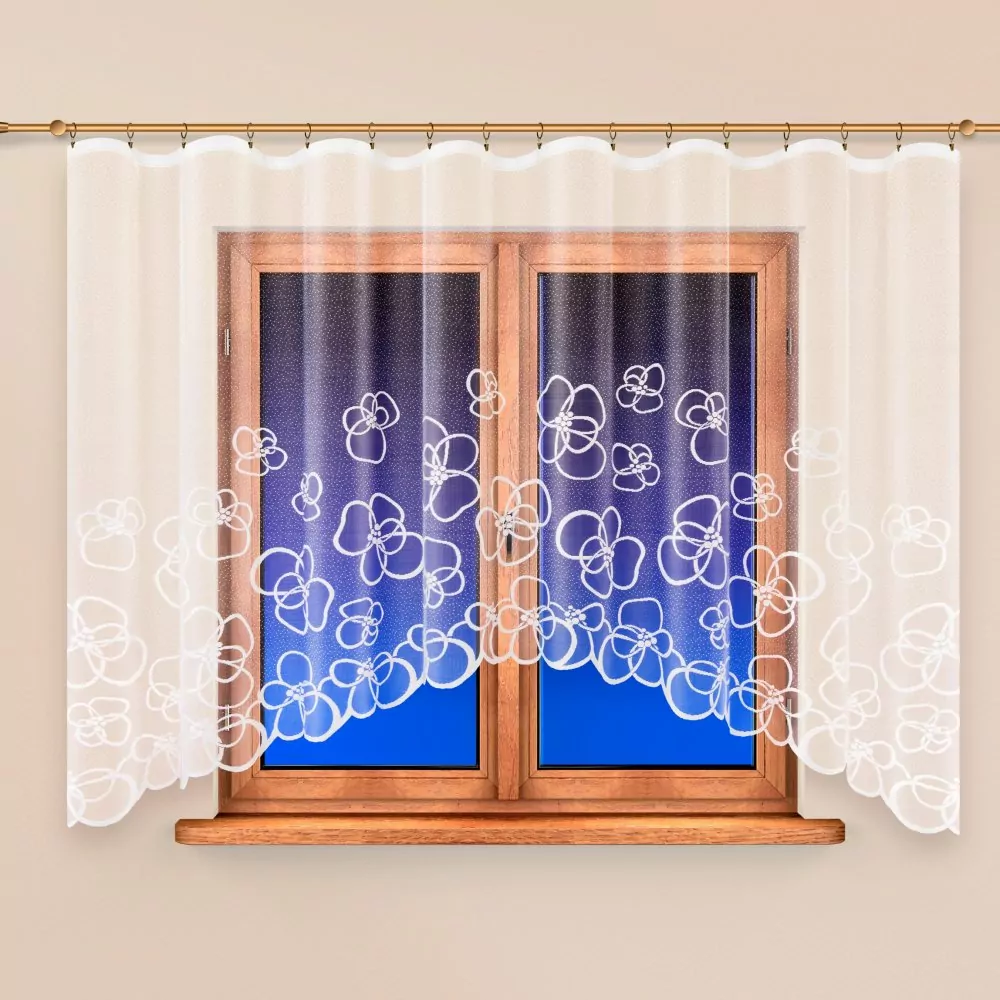 Kusová žakárová záclona se vzorem geometrického květinového vzoru. Záclona Baldana je zakončena do oblouku. Obloukové záclony jsou velice oblíbené, jelikož nechají vyniknout parapet, který můžete využít na dekorace nebo květiny. Záclona má na vrchní části pevný okraj, který stačí pouze nažabkovat.
