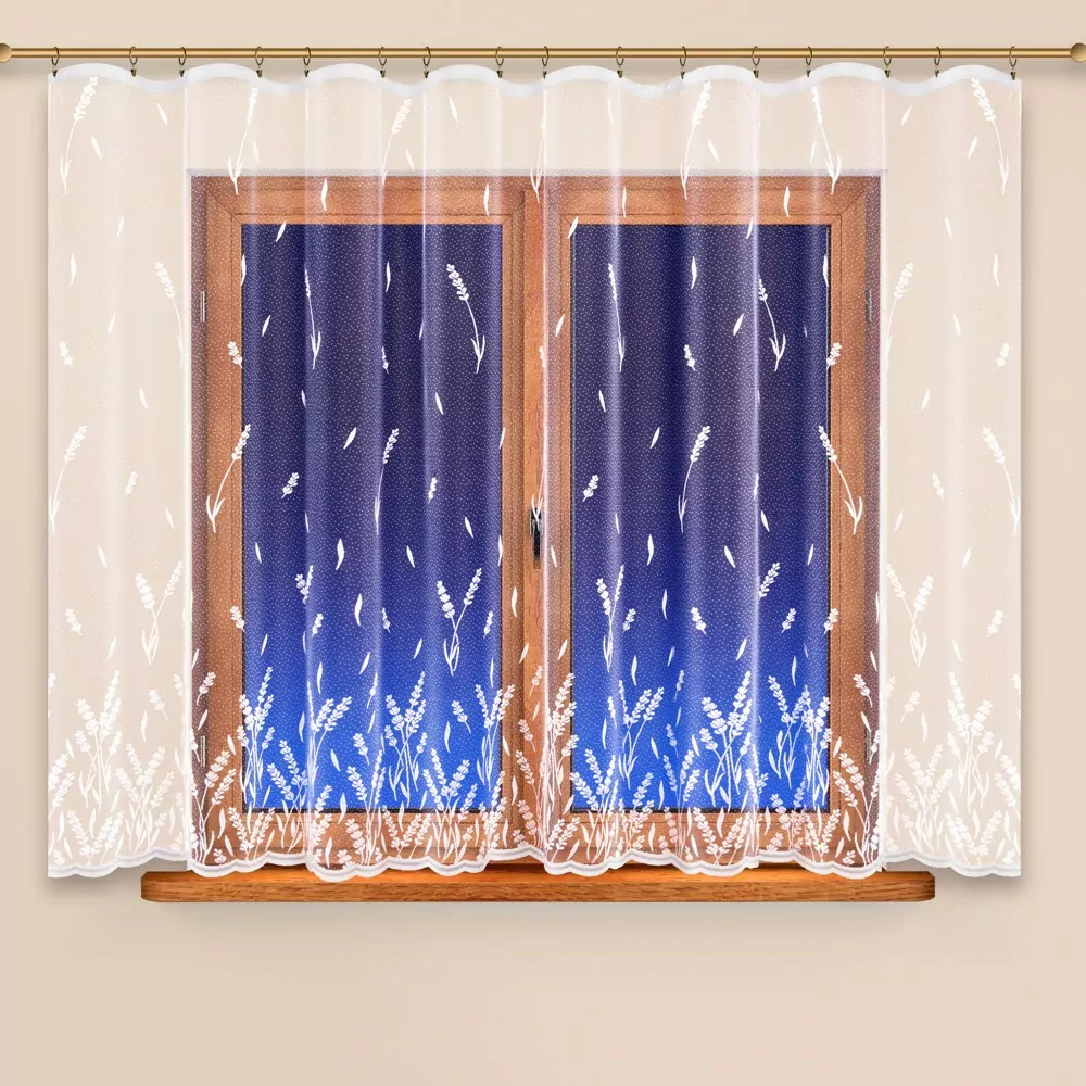 Kusová žakárová záclona s květinovým vzorem oblíbených levandulí. Záclona Levandule je v prodeji v několika rozměrech a proto je možné zakoupit jak záclonu na balkonové dveře, tak na okno. Záclona se hodí do kuchyní, obývacích pokojů či ložnic.Kusová záclona Levandule je opatřena řasící stuhou F1 s pravidelnými sklady 1:2.