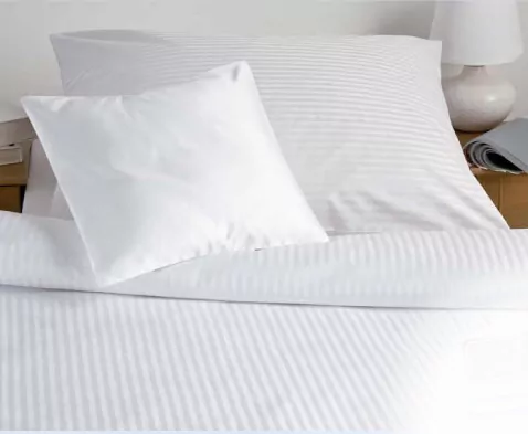 Povlečení s atlas grádlovou vazbou v bílé barvě s proužky 0,4 cm, zapínání zip. Povlečení má certifikát jakosti a zdravotní nezávadnosti.