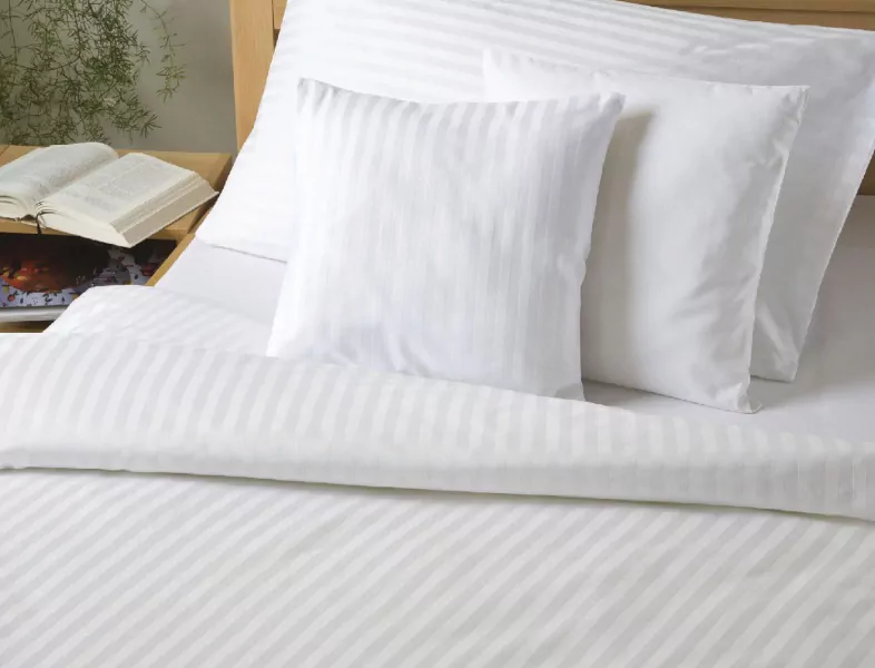 Povlečení s atlas grádlovou vazbou v bílé barvě s proužky 0,8cm, zapínání zip. Povlečení má certifikát jakosti a zdravotní nezávadnosti.