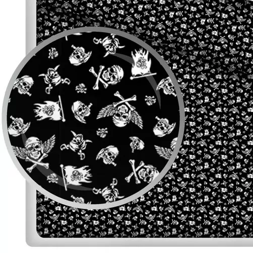 Bavlna je potištěná oblíbeným motivem lebek v pirátském stylu.
