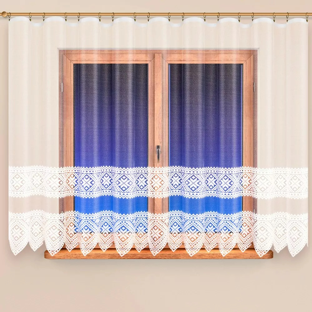 Jemná záclona Olena v bílé barvě s výraznou geometrickou bordurou. Záclona má velice zajímavý vzhled, který krásně doplňuje zakončení ve tvaru zoubků. Záclona Olena je vhodná jak do obývacích pokojů, tak do ložnic. Pro kvalitní nařasení záclony, doporučujeme nechat si našít řasící stuhu.