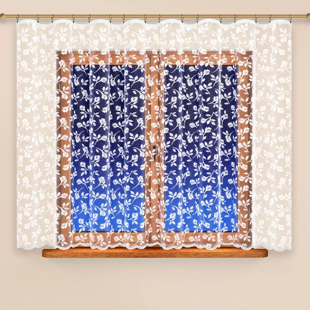 Celoplošná žakárová záclona s květinovým vzorem růží. Záclona Rosa je v prodeji v několika výškách, a proto je vhodná i jako balkonový set. Pro kvalitní nařasení záclony, doporučujeme nechat si našít řasící stuhu.