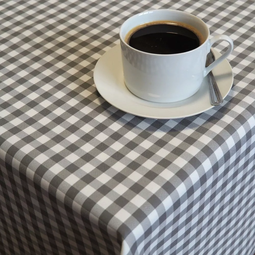 Tkané polyesterové ubrusy s teflonovou úpravou. Ubrusy s oblíbenými kostičkami o velikosti 1x1 cm jsou praktickým i trendy doplňkem každého stolu. Teflonové ubrusy nesají žádné tekutiny, tedy ani kávu, čaj nebo víno. Vylitá tekutina zůstává na povrchu teflonové látky a lze ji jednoduše setřít ubrouskem či utěrkou. Nevztahuje se však na mastnotu. Okraje ubrusu jsou opalovány do ozdobných vlnek.