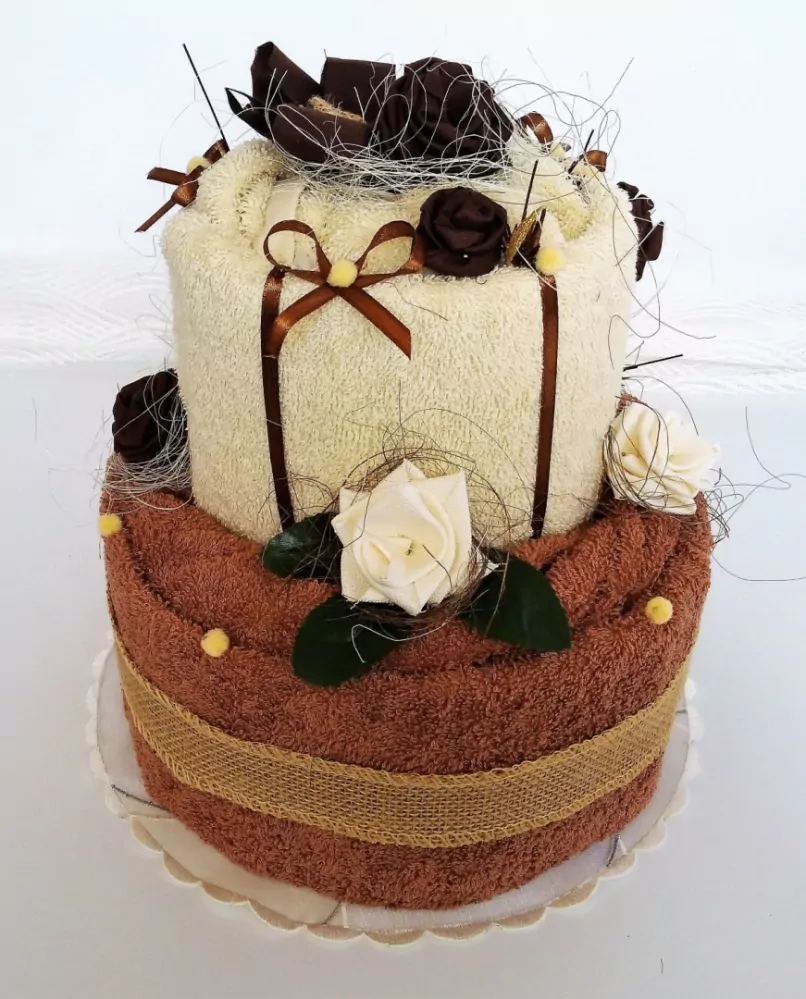 Textilní dort dvoupatrový - béžová růžeDodání do 5 dnů940 Kč/ ks777 Kč bez DPH