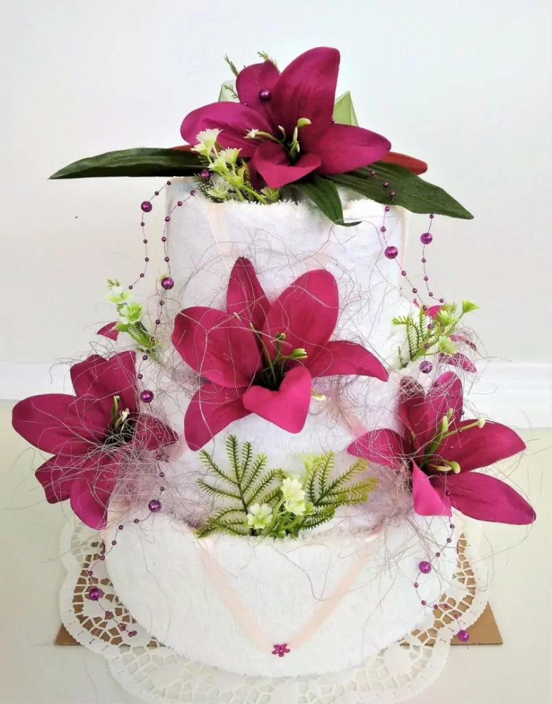 Textilní dort třípatrový Lilie 10037Dodání do 7 dnů1 420 Kč/ ks1 174 Kč bez DPH