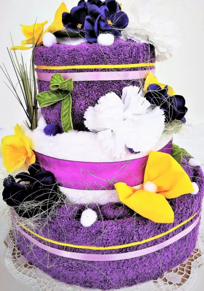 Textilní dort obsahuje: 2ks osušek + 2ks ručníků