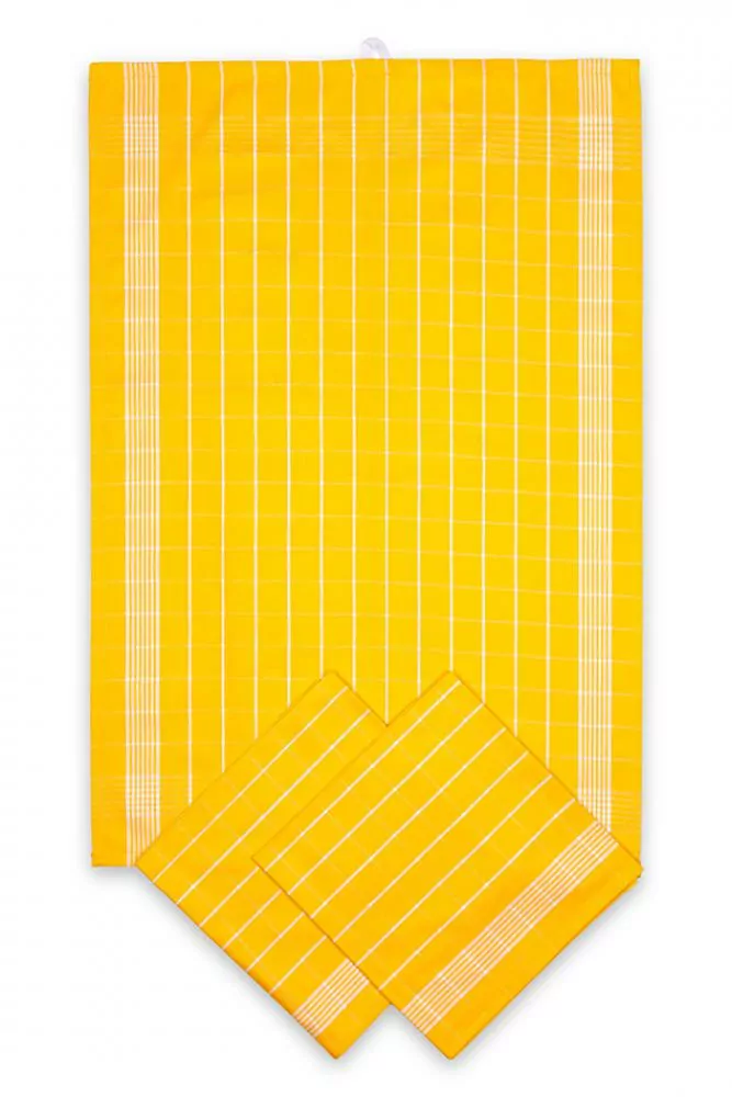 Sada tří bavlněných utěrek s kostkami - kombinace barev bílá a žlutá.