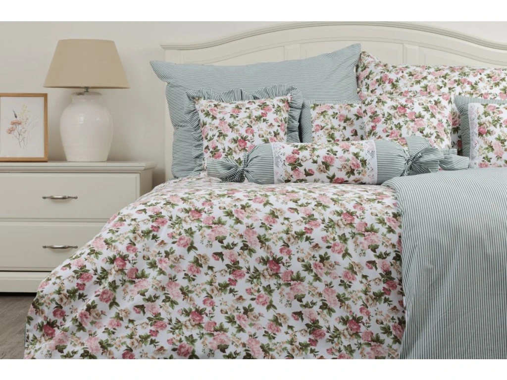Objevte oboustranné bavlněné povlečení, které kombinuje jemný olivový proužek s romantickým rustikálním motivem růží. Každá strana nabízí jiný vzhled, takže snadno proměníte styl ložnice podle nálady – od klidného přírodního designu po výraznější venkovský styl.