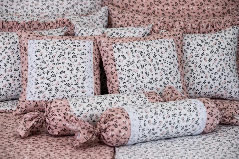 Bavlněný povlak HERBARIUM v kombinaci bílé a starorůžové.
