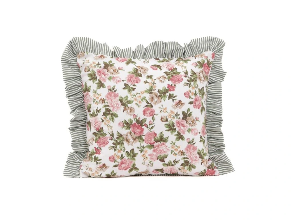 Dolaďte vzhled své ložnice nebo interiéru dekorativním povlakem na polštář Rustikální růžička se zeleným proužkem.