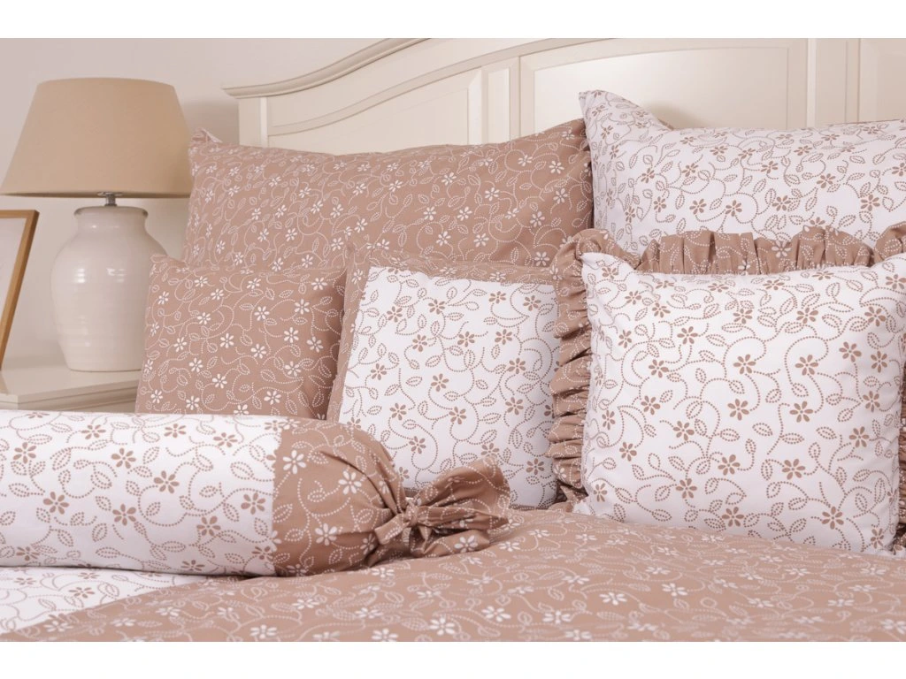 Dekorativní válcovitý povlak doplněný jemnou krajkou dodá ložnici romantický a elegantní vzhled.