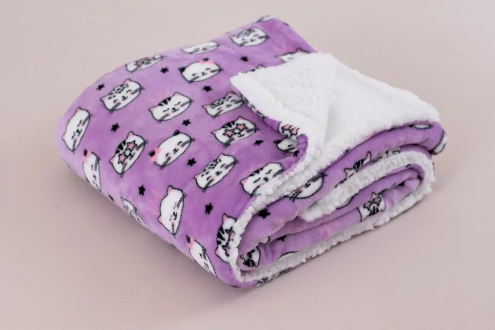 Deka mikroflanel s BERÁNKEM FIALOVÉ KOČIČKY - 150 x 200 cm