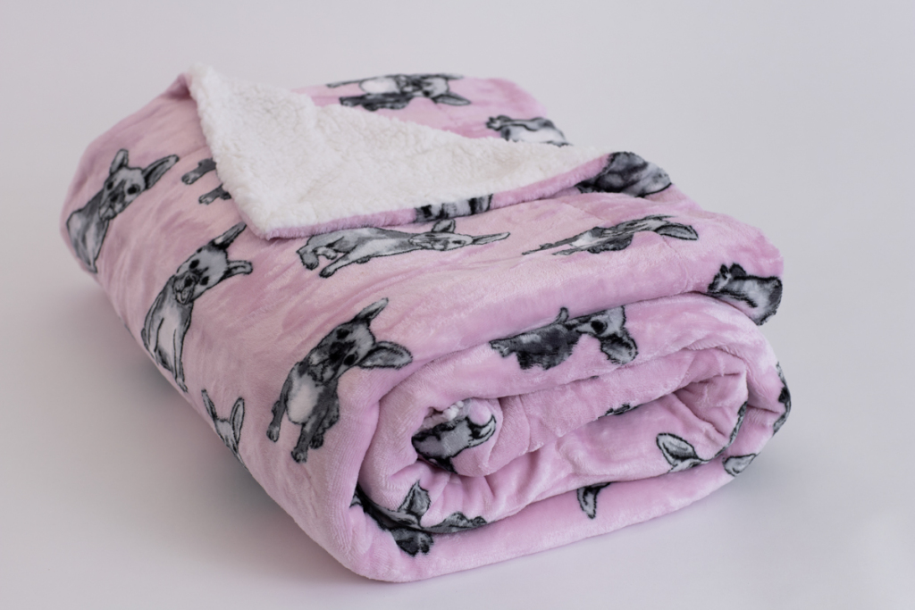 Hebká deka s motivem buldočků.