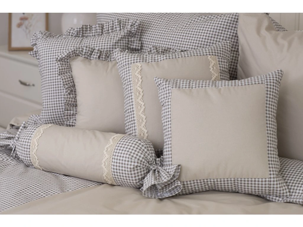 Dolaďte vzhled své ložnice nebo interiéru oboustranným dekorativním povlakem na polštář, který v sobě spojuje jednobarevnou a jemně kostičkovanou stranu. Díky oboustrannému provedení můžete vzhled snadno měnit podle nálady či ročního období. Nadčasová kombinace se hodí do venkovského, klasického i moderního interiéru.