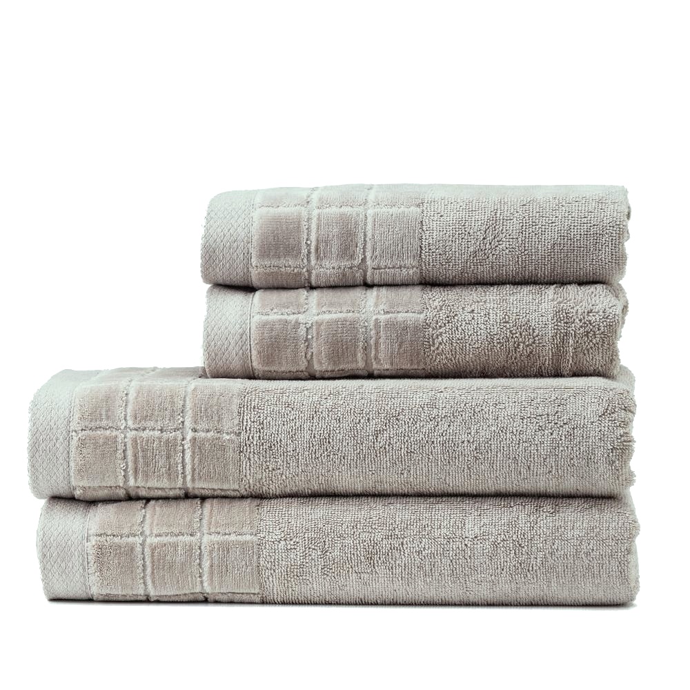 Ručník je zdobený plastickou kostkovanou bordurou, která mu dodává čistý a moderní vzhled.