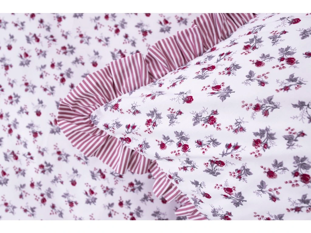 Romantické bavlněné povlečení BORDÓ KYTIČKA / RŮŽOVÝ PROUŽEK s kanýrem