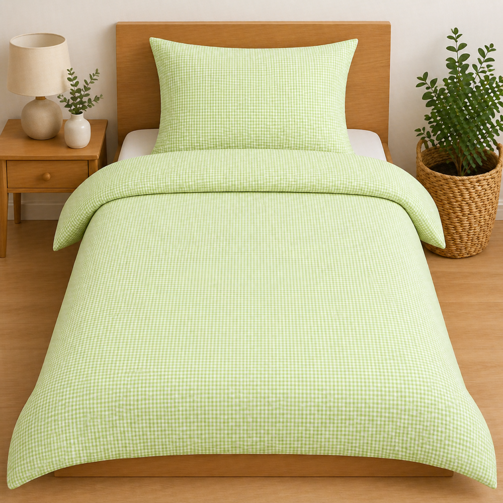 Kanafasové povlečení 140x200 – jarně zelené, kostička 0,2 cm