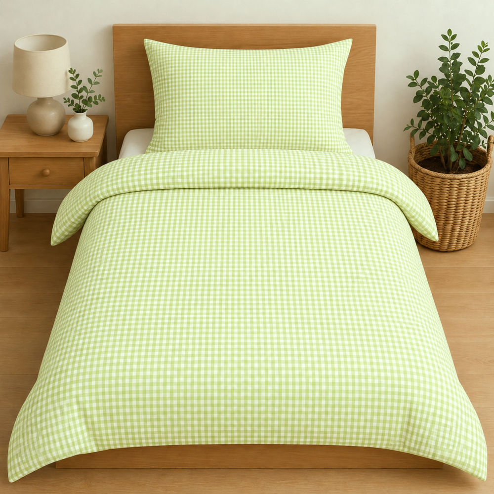 - Kanafasové povlečení 140x200 + 70x90 cm – jarně zelené, kostka 0,5 cm