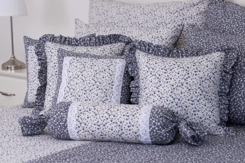 Kvalitní krepový povlak v nádherné jeansové barvě s modrobílým potiskem drobných kytiček přináší do vaší ložnice svěžest a stylovou eleganci. Povlak je kombinovaný z dvou látek negativ a pozitiv. Tento povlak je vyztužený rounem, prošitý a zdobený krajkou.