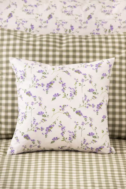 Prémiový krepový povlak s potiskem kytiček a zelených kostek.