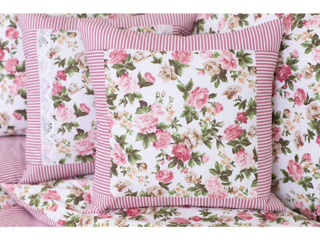 - Krepový povlak prošitý Rustikální růže s růžovým proužkem - 40x40 cm