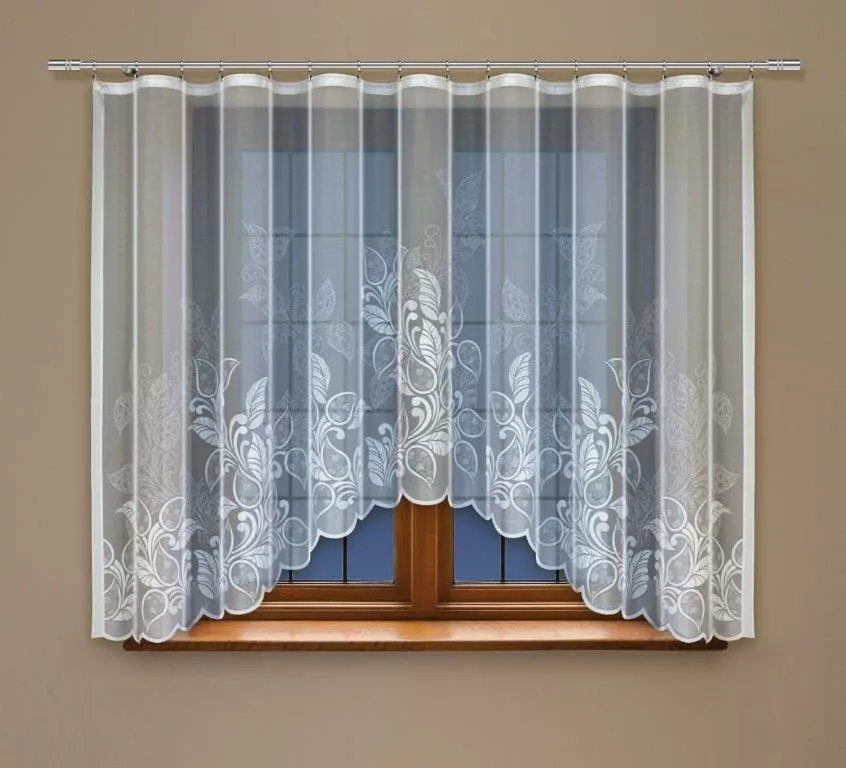 Záclona žakárová s obloukovým tvarem a floristickým vzorem představuje jedinečný prvek pro vaše okno. Záclona Evita se vyznačuje nejen estetickým designem, ale i originálním vzorem se stínováním, který dodává oknu jedinečný vizuální efekt. Obloukový design záclony patří mezi vyhledávané, protože působí vkusně a zároveň umožňuje parapet vyniknout, což můžete využít pro dekorace nebo květiny.