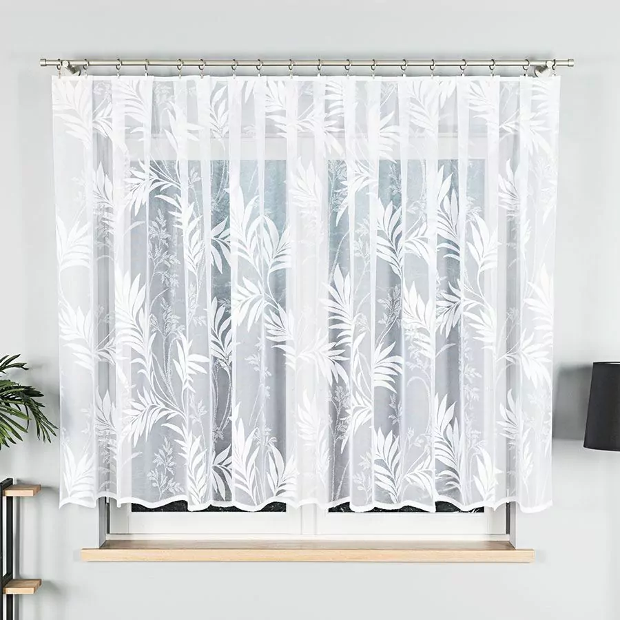 Kusová žakárová záclona s celoplošným floristickým vzorem. Vzor palmových listů se rozprostírá po celé ploše záclony. Tato záclona je skvělým doplňkem do kuchyní, obývacích pokojů či ložnic, přinášející do prostoru svěžest a příjemnou atmosféru inspirovanou přírodou.