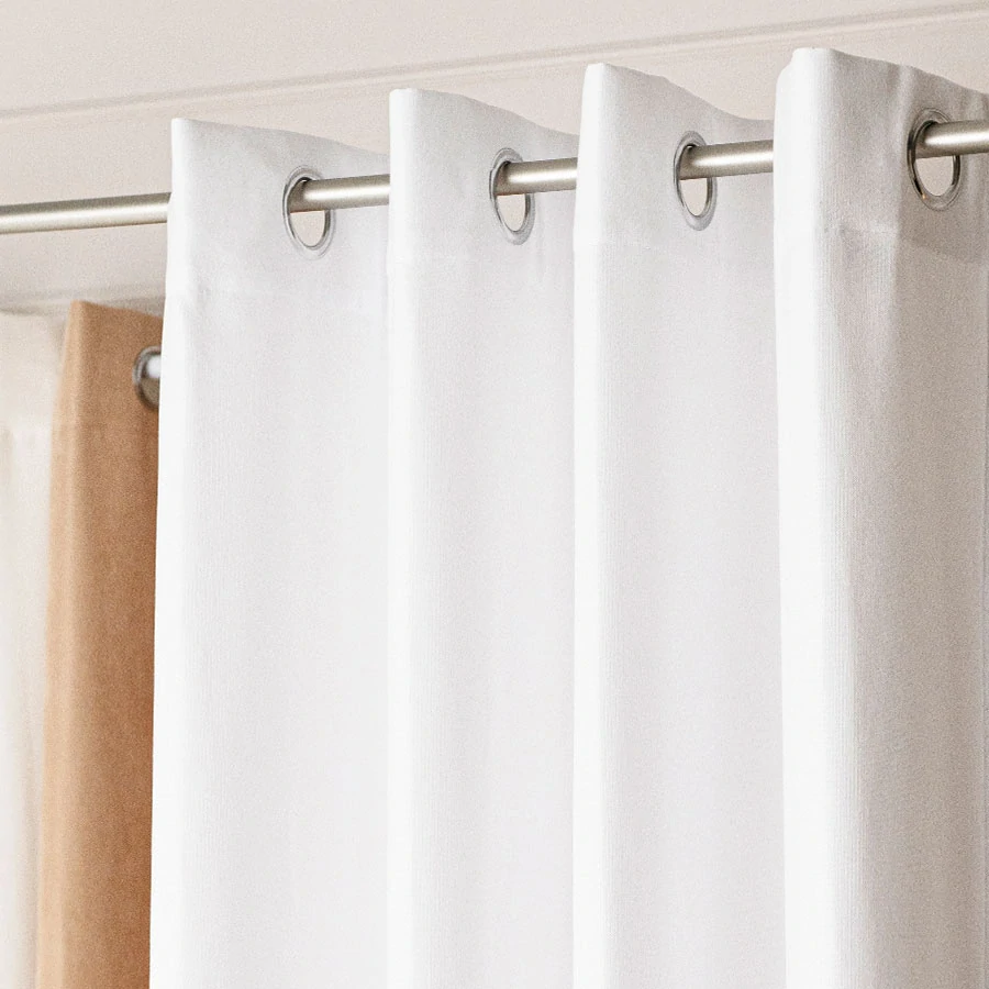 Elegantní závěs MILAS bílý s kovovými kroužky je vyroben z polyesterové tkaniny s přírodním vzhledem, která dodává interiéru moderní i nadčasový styl. Jednobarevný design se snadno kombinuje s ostatním vybavením a dekoracemi a díky osmi kovovým průchodkám lze závěs pohodlně zavěsit na garnýž o průměru až 30 mm. Po zavěšení se látka přirozeně řasí a vytváří pravidelné elegantní vlny.