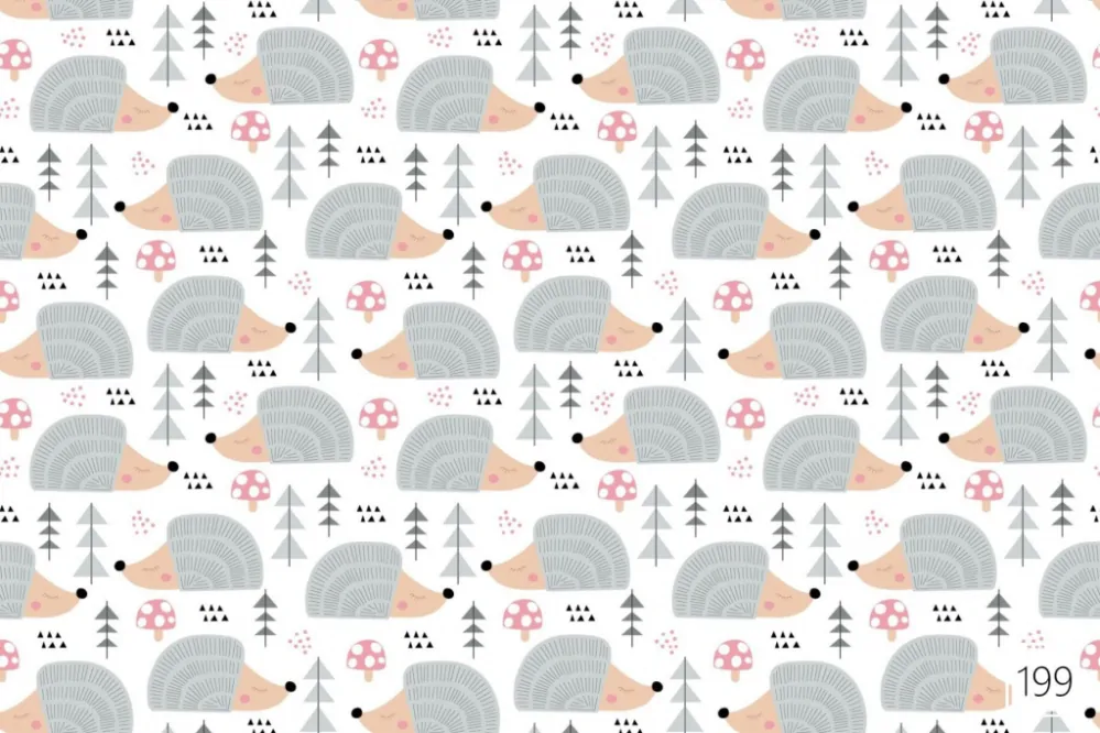 Bavlněná látka vysoké gramáře se vzorem ježečků.