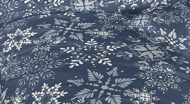 Metráž bavlna se vzorem vloček na tmavě modré.