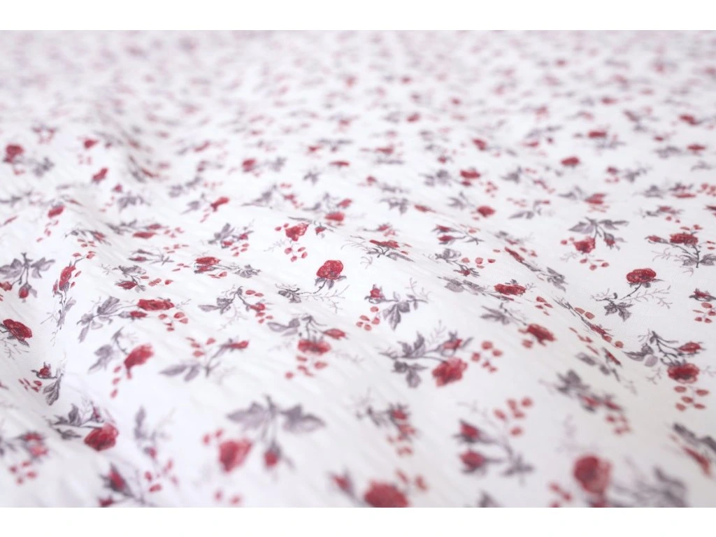 Vytvořte si vlastní povlečení, povlaky nebo dekorace z kvalitní krepové bavlněné látky s motivem kytička bordó na bílém podkladu. Jemný romantický vzor vnese do interiéru kouzlo venkovského stylu a vaše výrobky budou nejen krásné, ale i praktické. Látka navíc krásně ladí s šedým proužkem, takže ji můžete snadno kombinovat a vytvářet originální sety.