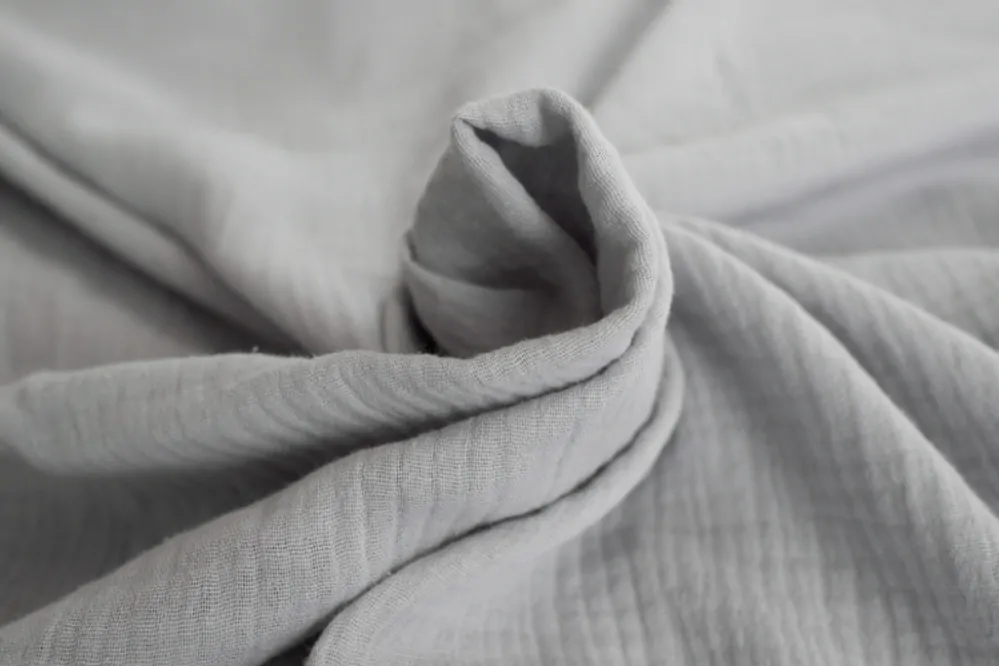 Mušelínové povlečení pro miminko do postýlky v šedé barvě.