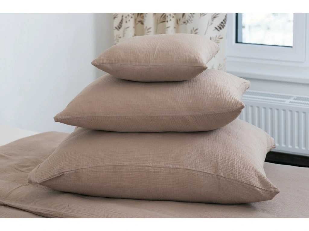 Mušelínový povlak na polštář v nugátové barvě přináší nebeský komfort a božskou jemnost do vaší ložnice. S povlakem vyrobeným ze 100% bavlny - mušelínu, si užijete vzdušný luxus každou noc. Mušelín je známý pro svou lehkost a jemnost, která se s každým praním ještě zvyšuje, čímž poskytuje stále měkčí dotek.