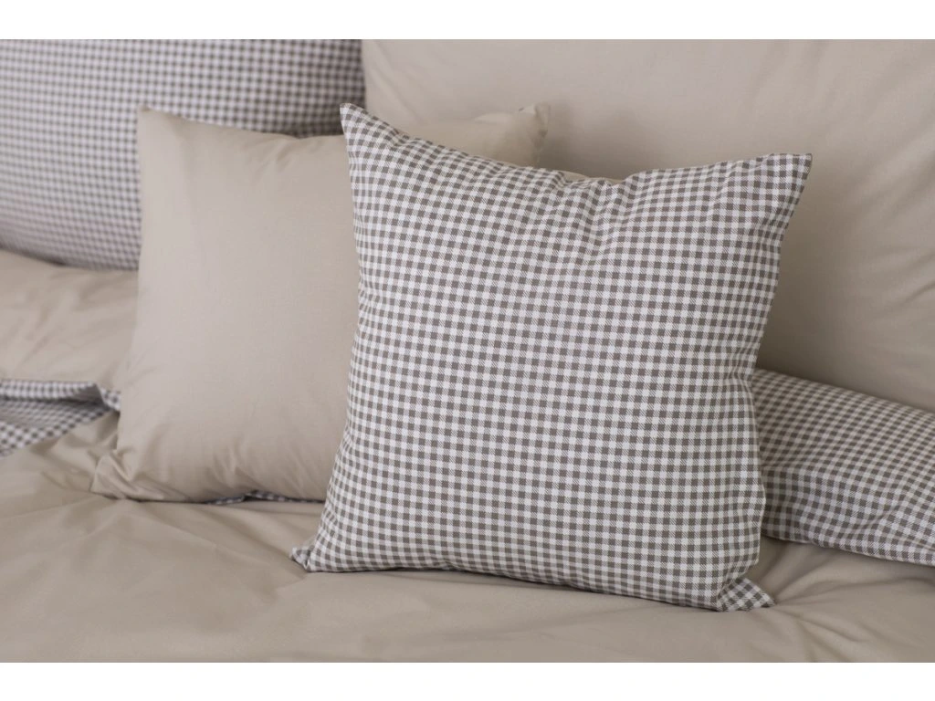 Oboustranný povlak na polštář v kombinaci jednobarevné a kostičkované látky – česká výroba