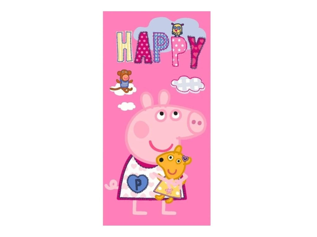 Veselá osuška s motivem Prasátka Pepiny a medvídka Teddyho přináší dětem pohodlí i úsměv každý den. Oblíbená postavička v jemných barvách potěší všechny malé fanoušky Pepiny.