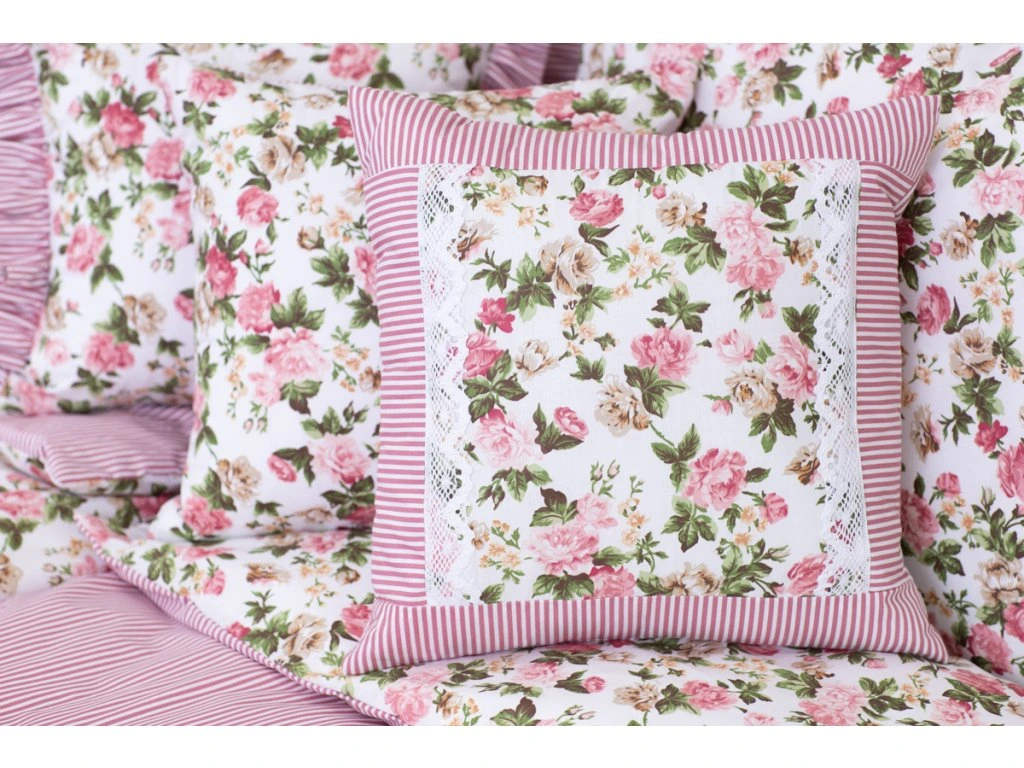 Povlak bavlna prošitý s krajkou RŮŽE RUSTIKÁL/PRUH RŮŽOVÝ - 40x40 cmDodání do 3 dnů270 Kč/ ks223 Kč bez DPH