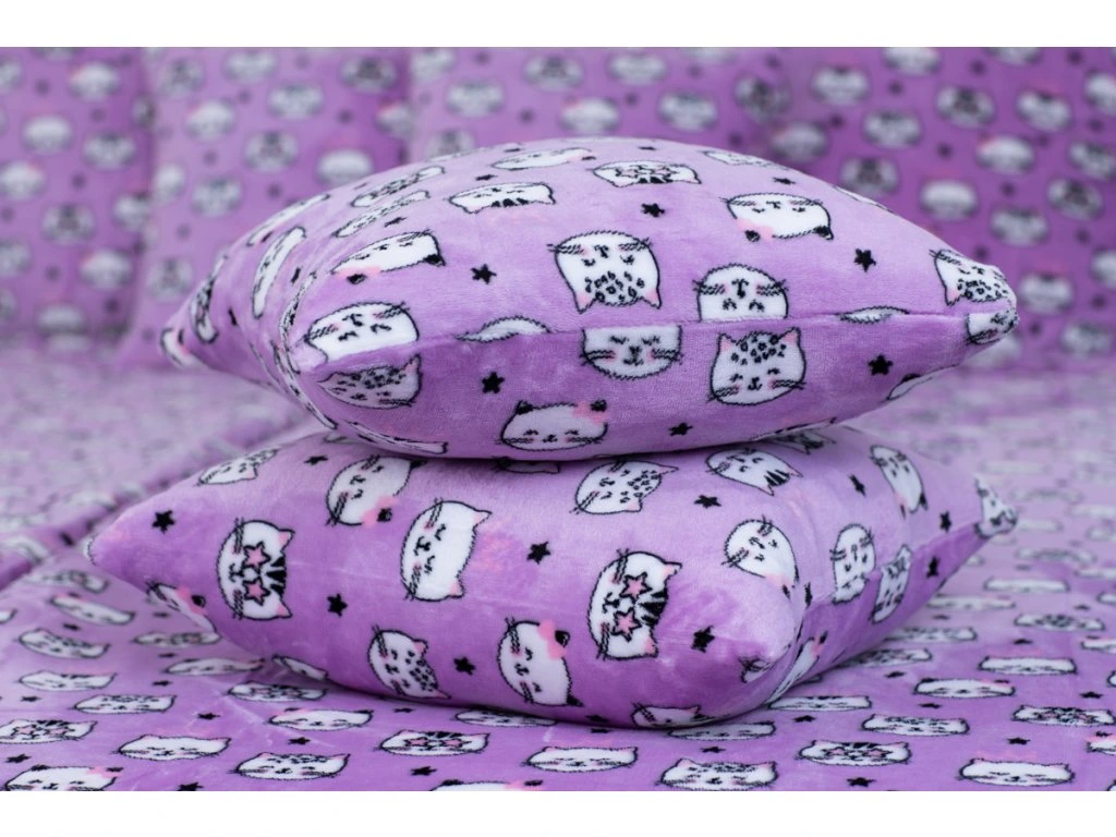 Povlak mikroflanel FIALOVÉ KOČIČKY 40x40 cm