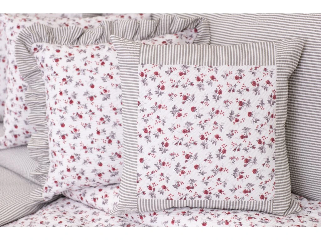 Objevte půvab oboustranných povlaků na polštáře ze 100% přírodní bavlny. Z jedné strany zdobí romantický motiv drobných bordó kytiček, z druhé strany nadčasový šedý proužek. Tato jemná kombinace vnese do vaší ložnice útulnou atmosféru venkova, ale zároveň působí moderně a svěže.
