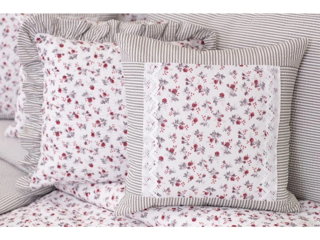 Objevte půvab oboustranných povlaků na polštáře ze 100% přírodní bavlny. Z jedné strany zdobí romantický motiv drobných bordó kytiček, z druhé strany nadčasový šedý proužek. Tato jemná kombinace vnese do vaší ložnice útulnou atmosféru venkova, ale zároveň působí moderně a svěže.