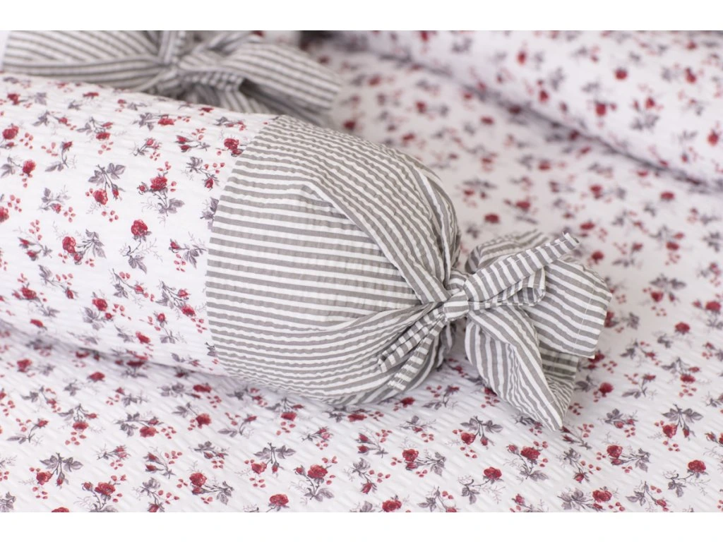 Objevte půvab oboustranných povlaků na polštáře ze 100% přírodní bavlny. Z jedné strany zdobí romantický motiv drobných bordó kytiček, z druhé strany nadčasový šedý proužek. Tato jemná kombinace vnese do vaší ložnice útulnou atmosféru venkova, ale zároveň působí moderně a svěže.