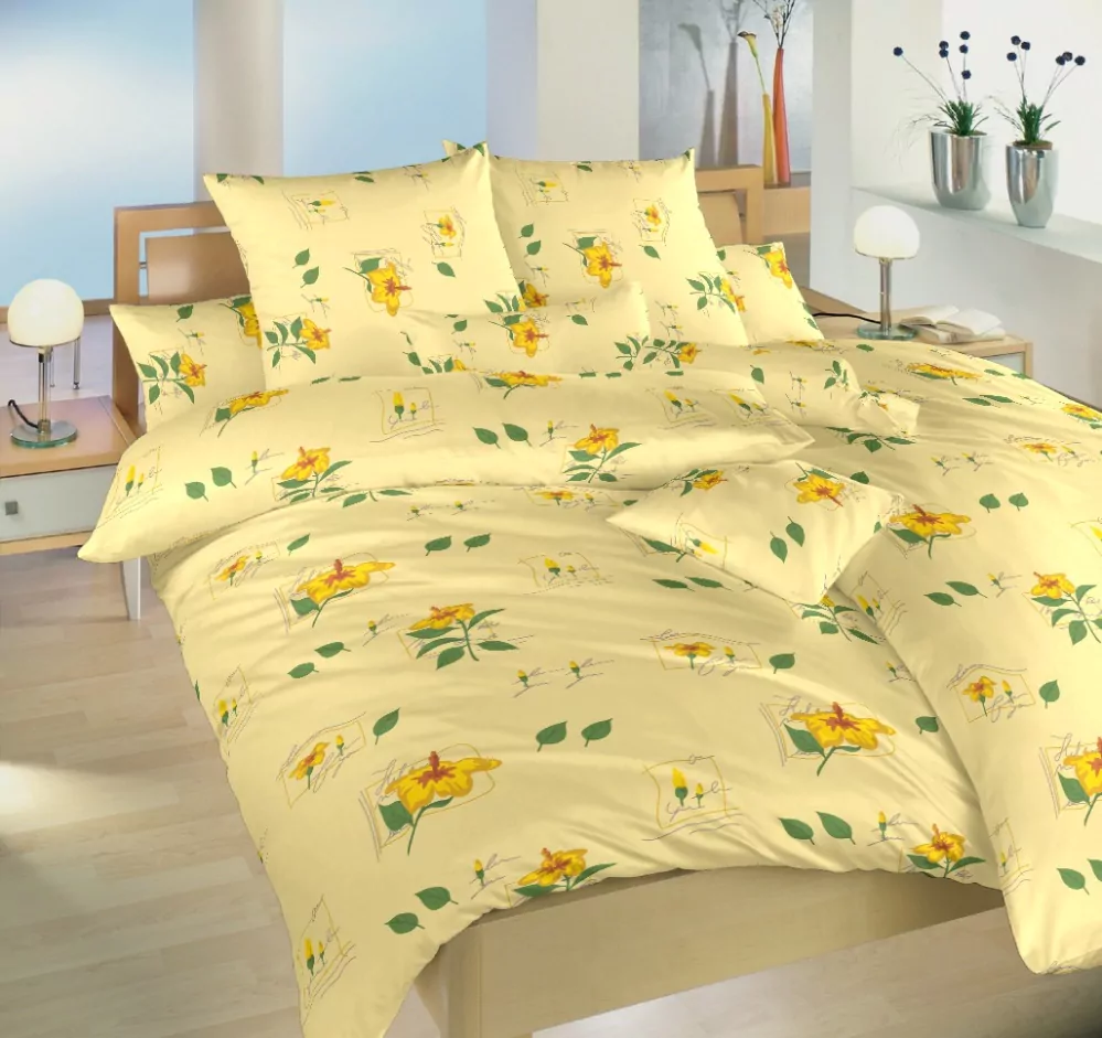 Komfortní ložní prádlo z kvalitní jemné bavlny se vzorem květinek na žlutém podkladu. Bavlněné povlečení Ibišek žlutý je vhodné kombinovat s banánovým nebo opálovým prostěradlem. V tomto vzoru si můžete zakoupit nejen povlečení, ale i povlaky nebo metráž a doladit si tak pokoj podle svých představ.