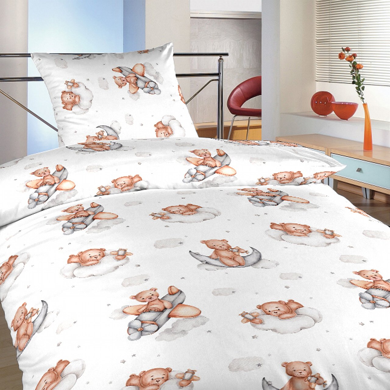 Bavlněné povlečení s roztomilými medvídky. Kvalitní a prodyšný materiál zajišťuje pohodlný spánek. Ideální ke kombinaci s prostěradlem v bílé, šedé, karamel nebo tmavě šedé barvě.